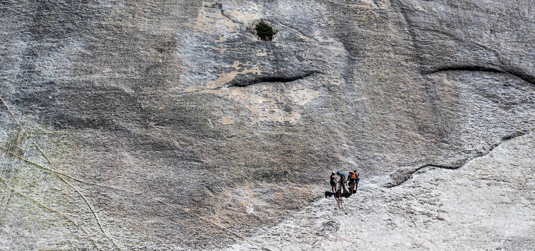 The evident distress in the movements of the tiny figure far below conveys a clear message, as does the eventual arrival of others who assemble in the open patch of jagged boulders at the base. It does not require expert knowledge to recognize that a rescue is underway.
