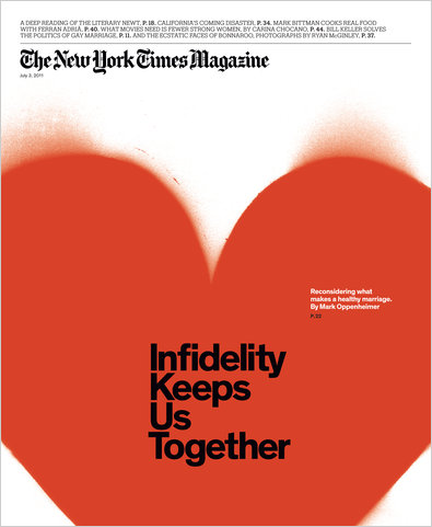 Now, working the same vein, the NYT Magazine has a huge cover story pushing consensual adultery, byline its “Beliefs” writer, Mark Oppenheimer. From “Infidelity Keeps Us Together:”