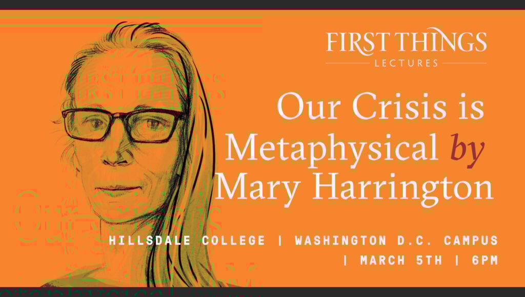 First Things, in partnership with Hillsdale College, is pleased to announce Mary Harrington will present this year’s D.C. Lecture “Our Crisis is Metaphysical?” on Thursday, March 5th at 6 p.m. at Hillsdale’s Washington D.C. Campus, 227 Massachusetts Ave., NE.