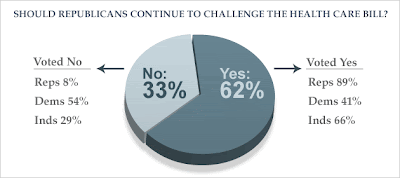 A CBS News poll released Wednesday finds that nearly two in three Americans want Republicans in Congress to continue to challenge parts of the health care reform bill. The Senate version of the legislation was passed by the House Sunday night, and President Obama signed it into law on Tuesday. The House also passed a separate reconciliation bill, which cannot be filibustered, that is now being debated in the Senate. That bill would make changes to the bill already signed into law.
