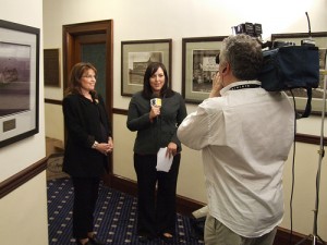 Next, the photo below is of a clearly pregnant Governor Palin being interviewed.