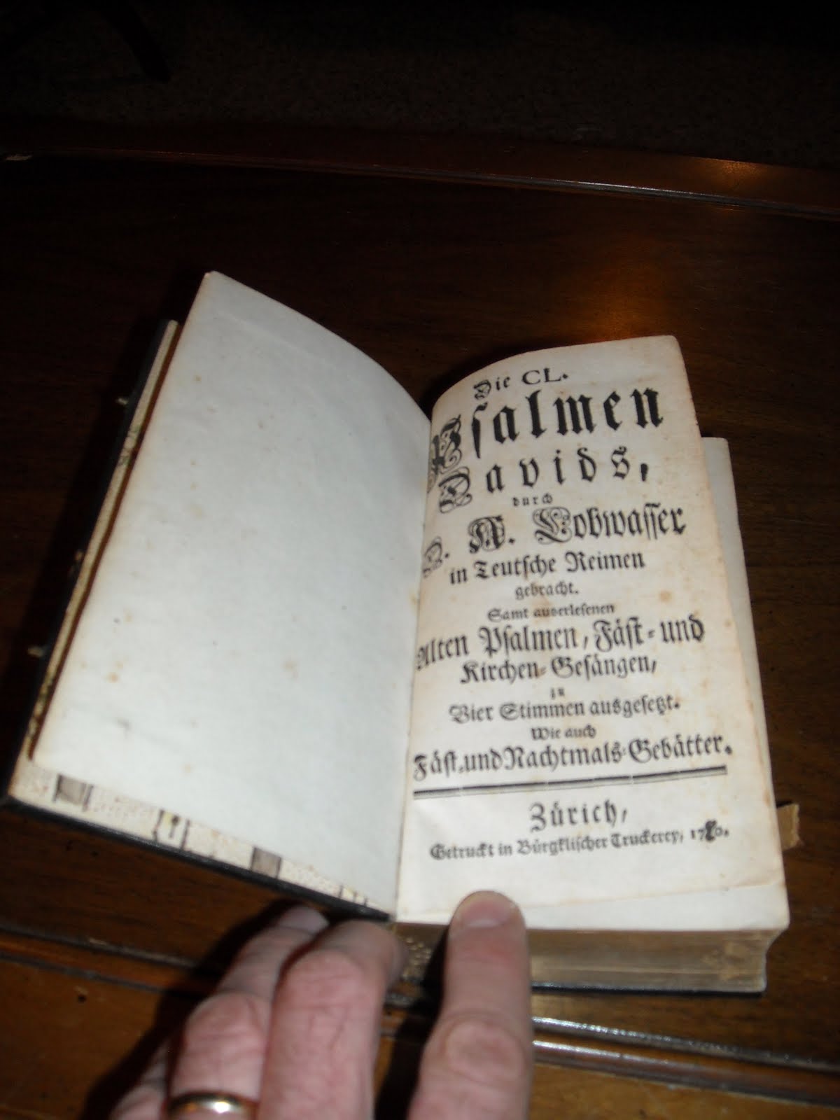 For Christmas this year my beloved wife gave me an antiquarian copy of the Lobwasser Psalter, a sturdy little volume that has weathered the centuries remarkably well. The Lobwasser Psalter was a German-language translation of the Genevan Psalms set to verse in 1573 by Ambrosius Lobwasser (1515-1585), a Lutheran teaching law at Königsberg in East Prussia. His translation was based on the French text he had heard the Huguenots singing during his stay in the Berry region of France. Lobwasser intended his Psalter primarily for private use. This edition was published in Zürich in 1770, by which time it was evidently being used in public worship as well.