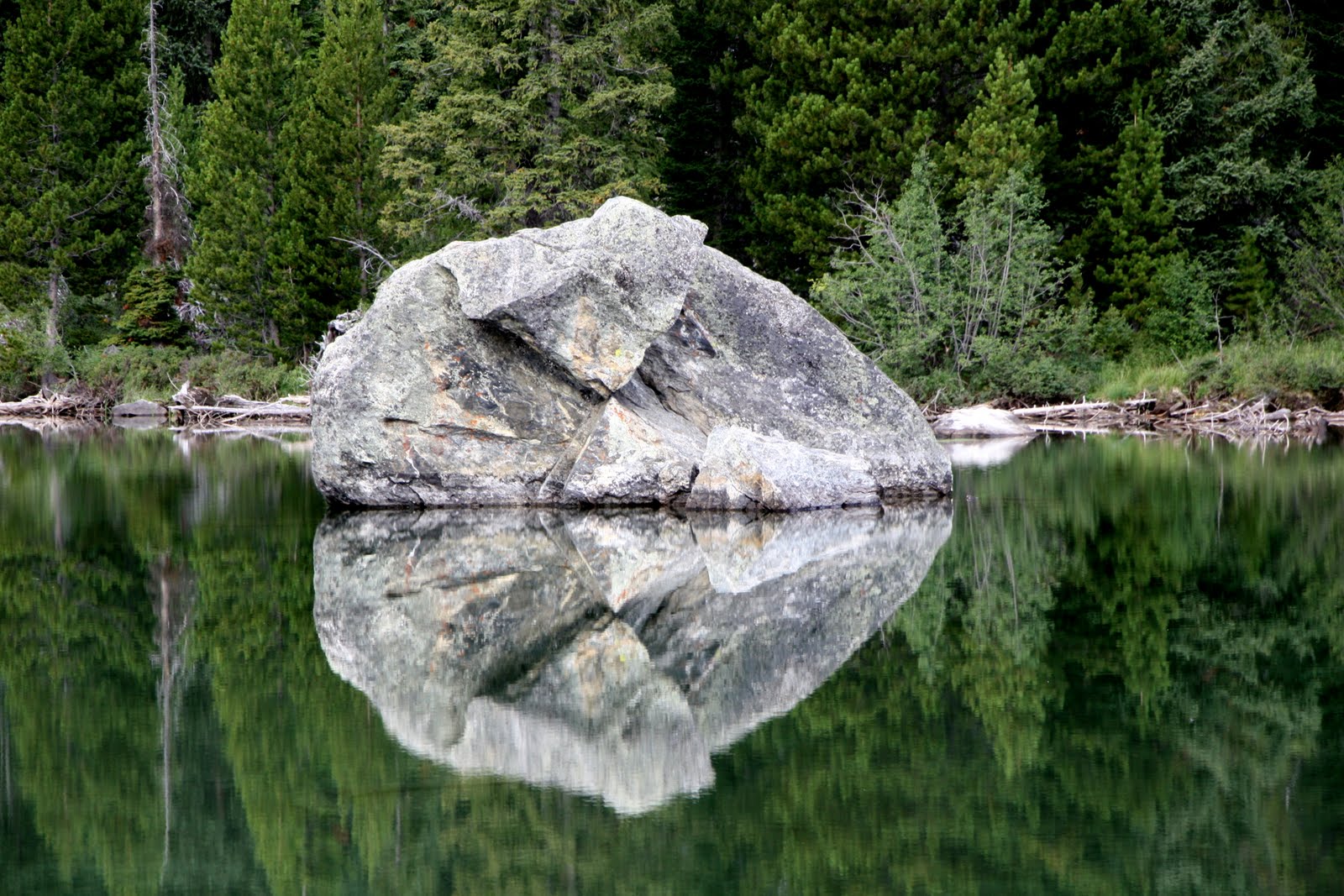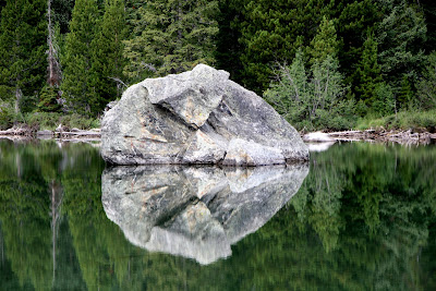 Debra and I took long hikes by beautiful lakes. I was quite taken by the reflection of this huge boulder—left by glaciers from the massive global warming that ended the last ice age: