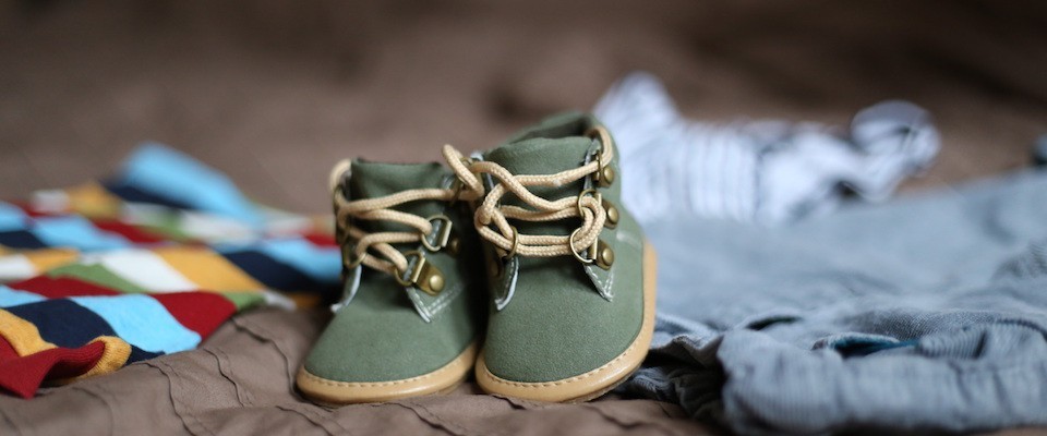 holding some baby shoes