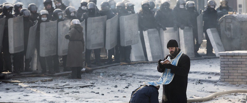 In South Africa, the ideology of apartheid was constructed and supported by the churches. The same is true for the ideology of the “Russian world,” a concept first formulated by Orthodox churchmen and today often promoted by them. In South Africa, the Nederduitse Gereformeerde Kerk (NGK) notoriously supported the National Party. Similarly, the Russian Orthodox Church was willing to serve as the uncritical chaplain to Yanukovych’s regime. On the first day of Yanukovych’s rule, the Patriarch of Moscow Kirill flew to Kyev to bless the newly elected president. On its last day, a key figure in the hierarchy of the Ukrainian Orthodox Church under the Moscow Patriarchate, Metropolitan Paul of Chernobyl and Vyshgorod, led a blessing service for Yanukovych and his clique at the Kyev-Pechersk Lavra, notoriously assuring him, “Today you carry a heavy cross, and the Church will be with you to the end, just as Simon of Cyrene helped carry the cross of Christ to Calvary.”