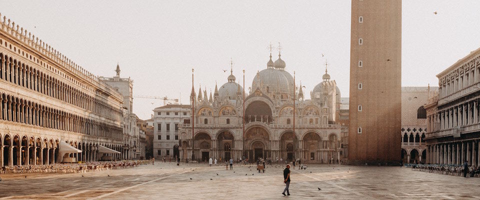Walking on water, i.e., in the streets of Venice,