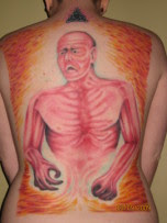 A woman’s tribute to Kevorkian—a tattoo of one of his paintings. He was a committed nihilist who said that the worst moment of his life was when he was born. I don’t know the woman, but tattooing that painting on your back for the rest of your life...well that’s a pretty nihilistic thing to do, too.