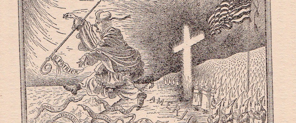The wall-of-separation surfaces again in the 1840s, Hamburger recounts, when nativists regarded the influx of Irish Catholic immigrants with alarm and disdain. They leveled the phrase “separation of church and state” in order to restrict Catholic voting, in particular, claiming that Catholics would vote according to the dictates of Rome, not American principles. They used the argument as a way to limit public funds for Catholic schools, too, and to keep Catholics out of the teaching profession (Protestant schools enjoyed public funds and Protestant ministers as teachers). Nativists advocated public schooling, Hamburger says, “as a means of homogenizing the population in the name of ‘Americanism.’ They explained that public schools would inculcate separation of church and state. That’s why everyone has to go to public schools, so Catholicism would be knocked out of them.”