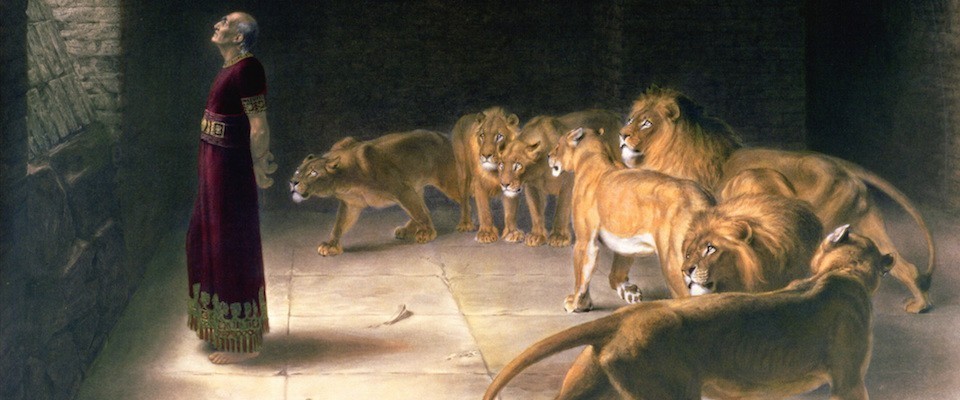 For people interested in church and state, the play has additional meaning. In the Old Testament book, King Darius’s courtiers urge him to issue an order providing that “whoever prays to anyone, divine or human, for thirty days, except to you, O king, shall be thrown into a den of lions.” Darius issues the order, but Daniel refuses to comply. “He continued to go to his house, which had windows in its upper room open toward Jerusalem, and to get down on his knees three times a day to pray to his God and praise him, just as he had done previously.” The courtiers find out and haul Daniel before Darius, who cannot take back his order, as the laws of the Medes and Persians, once proclaimed, are irrevocable. Daniel goes off to the lions, but God sends an angel to protect him. Moved, Darius frees Daniel and orders the courtiers thrown to the lions instead. They don’t fare as well.