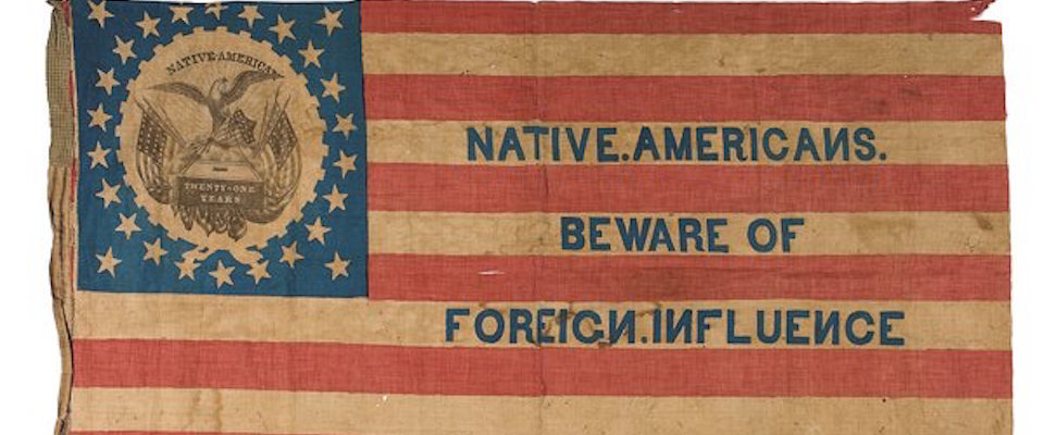The nativist Know Nothing movement—officially known as the Order of the Star Spangled Banner, and as the American Party when it entered formally into electoral politics—flashed across American public life in the mid-1850s. It heralded the demise of the Whig Party, and the Second Party System more generally, and set the stage for the rise of the Republican Party. While scorned by major figures in the new party (including Abraham Lincoln) Know Nothingism has been a sometimes-more minor, sometimes-less minor, but nonetheless pivotal, and tawdry, part of the Republican coalition ever since.