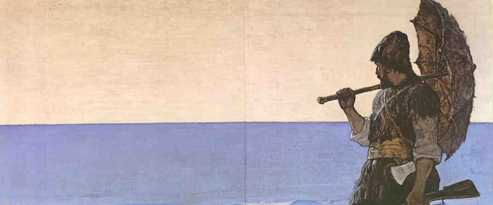 Crusoe's journey to the island has to be understood in the same context. Why, Starr wonders, does it take “nearly fifty pages before Crusoe clambers ashore on his island”? Starr points to other texts that use “metaphors of physical distance . . . wandering, straying, fleeing, hiding, and rambling in order to convey the inward spiritual remoteness from ‘the true center of his being.'” Defoe literalizes the metaphor: “Crusoe actually undergoes such wanderings” (84).