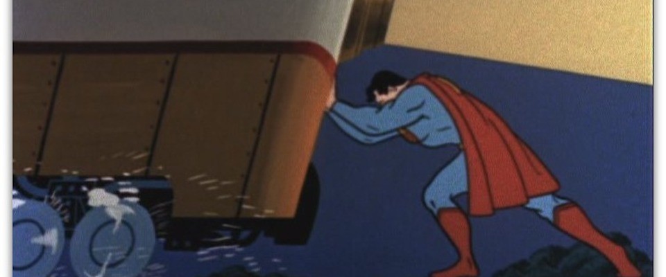 “Faster than a speeding bullet, more powerful than a locomotive, able to leap tall buildings in a single bound.” The comparisons are not random, argues Aldo Regalado in Bending Steel: “By measuring Superman’s powers against those of the bullet, the train, and the skyscraper, these phrases offer clues that hint at the cultural, social, and historical origins of this uniquely American phenomenon.” Bullet, train, and skyscraper were symbols of modern achievement, and the comparison meant that “Superman of the late 1930s and early 1940s was defined by his triumph over technological, institutional, infrastructural, and bureaucratic forces that most would celebrate as markers of American military, economic, and global supremacy. “