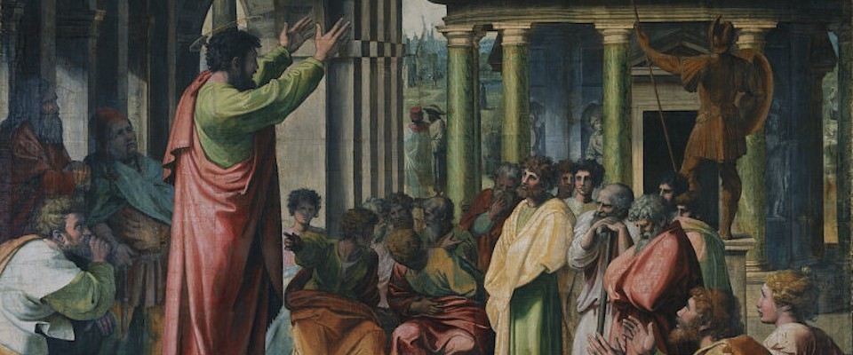 Paul’s speech focuses on religious practice, on worship. An altar to an unknown God provides his launching point, he proclaims the God whom the Athenians “worship in ignorance,” he insists that temples do not confine God and that cultic service does not meet any of His needs. Divine nature is not like gold, silver, or stone, and human worship must conform to the nature of God. Though Paul does not say it outright, his underlying assumption is that human beings are homo adorans, homo liturgicus, created to adore, created for worship. We are beings who will worship.