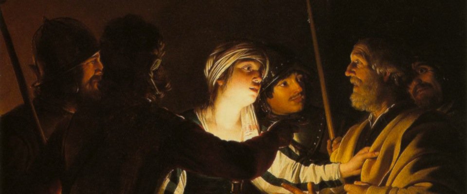 All four Gospels go into slow motion as Peter methodically renounces Jesus. The tale is excruciating. A fissure opens slightly, and suddenly everything gives way as one detail surges into another. This happened, and Peter denied his teacher. A little while later another question, and again Peter said this, another denial. About an hour later, he is asked again and, again, Peters disowns him whom he has called Lord and Messiah.