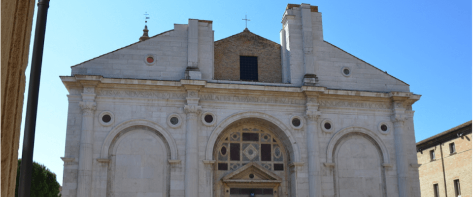 But Italy has another, less frequented Franciscan pilgrimage site, where the Saint’s message can be heard with less distraction. Because Rick Steves counsels avoiding the town of Rimini completely, you’re unlikely to meet any Americans while visiting. But as you cut through the beach hotels, a short walk from a surviving Roman arch is the Church of San Francesco. What makes this church remarkable is that the town’s famous Quattrocento war lord, Sigisimondo Pandolfo Malatesta (1416-1468), tried to turn it into the Tempio Malatestiano—that is, a temple to himself. For a sense of his audacity, imagine Donald Trump turning St. Patrick’s Cathedral into an extension of Trump Tower.